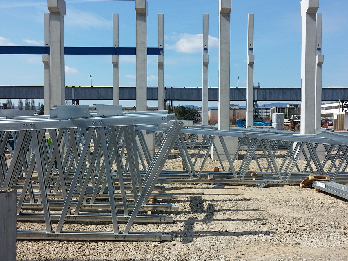 Nosná konštrukcia haly je z prefabrikovaných stĺpov a oceľovej strechy, založená je na železobetónových veľkopriemerových pilótach. Stĺpy sú z prefa betónu vyššej pevnosti- triedy C45/55. Strecha je z tenkostenných profilov s vysokopevnostnej ocele. Po prefa stĺpoch chodia žeriavy s nosnosťou 180 ton. V spolupráci s dodávateľmi žeriavov sme navrhli systém pre zredukovanie nákladov a zoptimalizovali konštrukciu s maximálnou redukciou ceny so zachovaním bezpečnosti a použiteľnosti nosných konštrukcii. Opláštenie haly je riešené sendvičovými panelmi s tepelnou izoláciou.