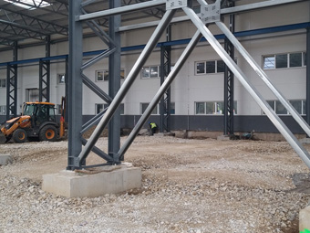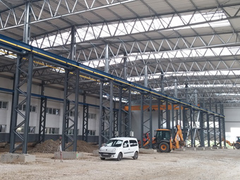 Die tragende Hallenstahlkonstruktion wird auf den Stahlbetonsäulen mit Kapitelln gebildet. Die tragende ...