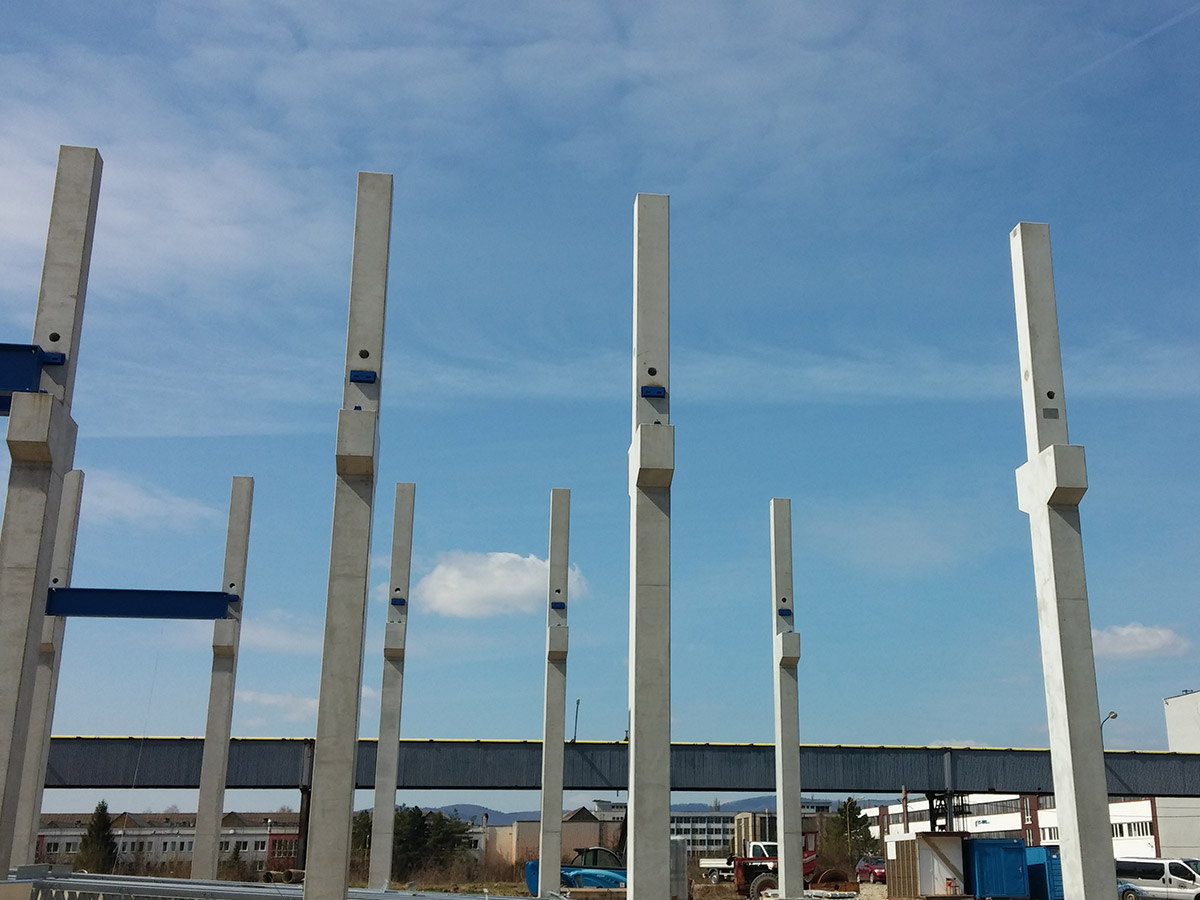 Nosná konštrukcia haly je z prefabrikovaných stĺpov a oceľovej strechy, založená je na železobetónových veľkopriemerových pilótach. Stĺpy sú z prefa betónu vyššej pevnosti- triedy C45/55. Strecha je z tenkostenných profilov s vysokopevnostnej ocele. Po prefa stĺpoch chodia žeriavy s nosnosťou 180 ton. V spolupráci s dodávateľmi žeriavov sme navrhli systém pre zredukovanie nákladov a zoptimalizovali konštrukciu s maximálnou redukciou ceny so zachovaním bezpečnosti a použiteľnosti nosných konštrukcii. Opláštenie haly je riešené sendvičovými panelmi s tepelnou izoláciou.
